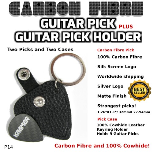 Kramer Carbon Fibre Guitar Pick and 100% Cowhide Guitar Pick Case